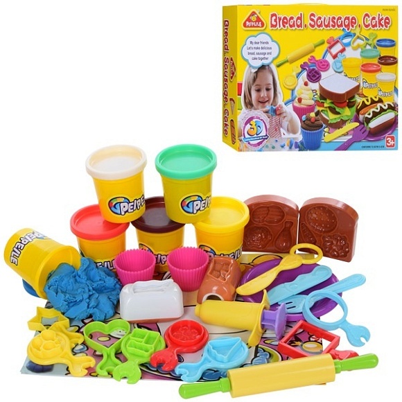 Опис Тісто для ліплення 3245 солодощі,хот-доги,6кол.(бан.з кришк.),аром.,формочки,інструм.,кор.,37-26-8см