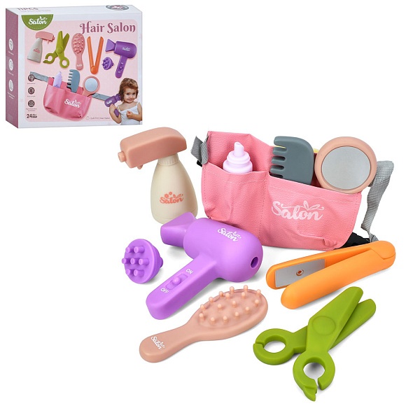 Опис Набір аксесуарів dl-001 набір перукаря, фен,плойка,гребін.,дзерк.,сумка,ножиці,11пр,в кор.,22-19-6см