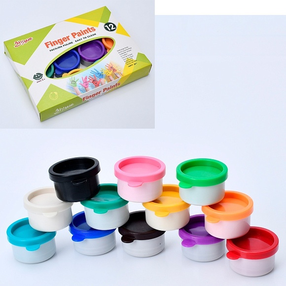 Опис Набір для творчості MK 5394 пальчикові фарби,легко змиваються,12кольорів,баноч.з кришк.,кор.,22-17-3