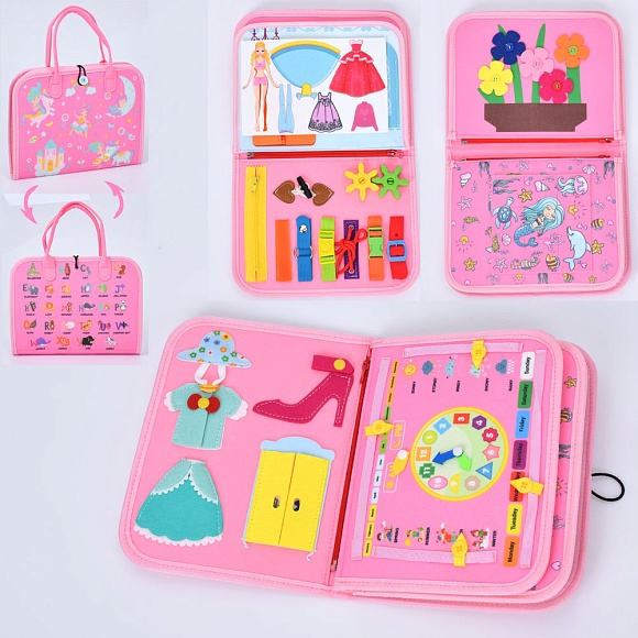 Опис Гра FG240507015Q бізісумка/бізікнижка,гардероб,квіти,пазли,застібки,шестерні,годин.,англ.слова,кул.