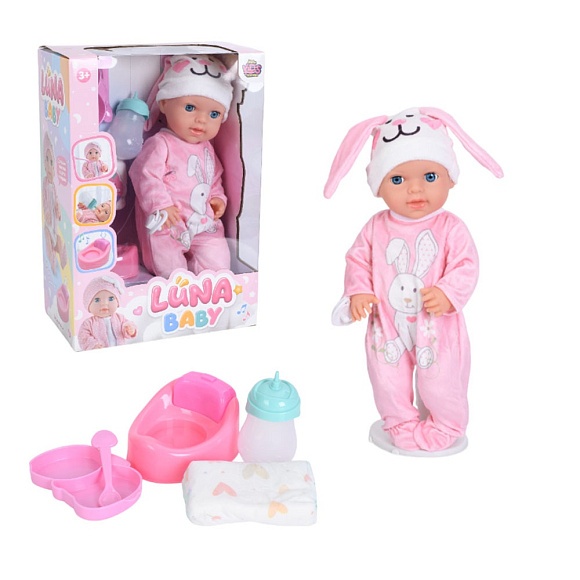 Опис Лялька akg-0059 пупс, п'є-пісяє, горщик, пляшечка, соска, підгузок, посуд, бат., кор.,26,5-38-15,5см