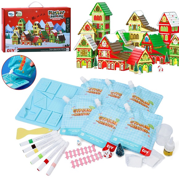 Набір для творчості 005-2 Різдвяне містечко,гіпс(6пак.),формочка(силікон),маркери 6шт,фігурки,стакан