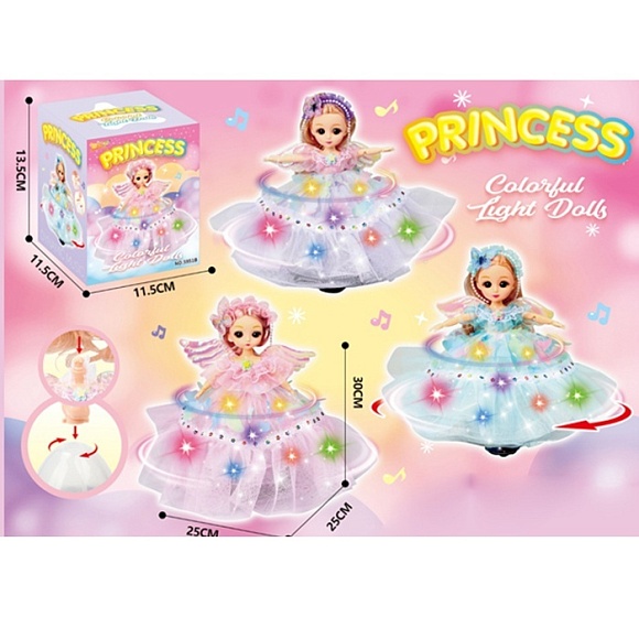 Опис Лялька 5951B шарнірни руки, танцює, розібр., 3 кольори, муз., світло, бат., кор., 11,5-13,5-11,5 см