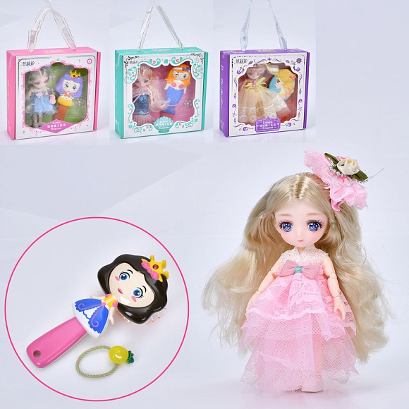Лялька 5021 шарнірна, гребінець, 4 види, кор., 20-19-6,5 см.