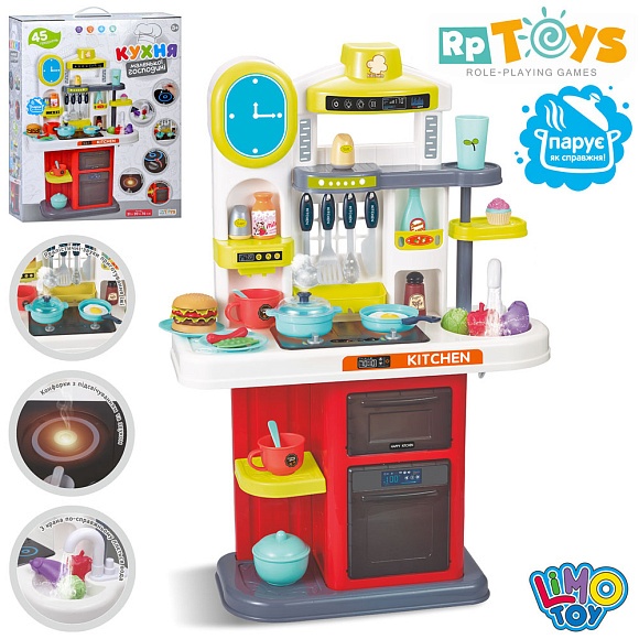 Кухня 16911A 51-20-в76см, плита, пара, звук,світло, духовка, мийка-ллється вода(механ), посуд,,бат.