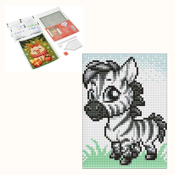 Опис Набір з алмазною мозаїкою без підрамника для дітей "Маленька зебра" 15х20см