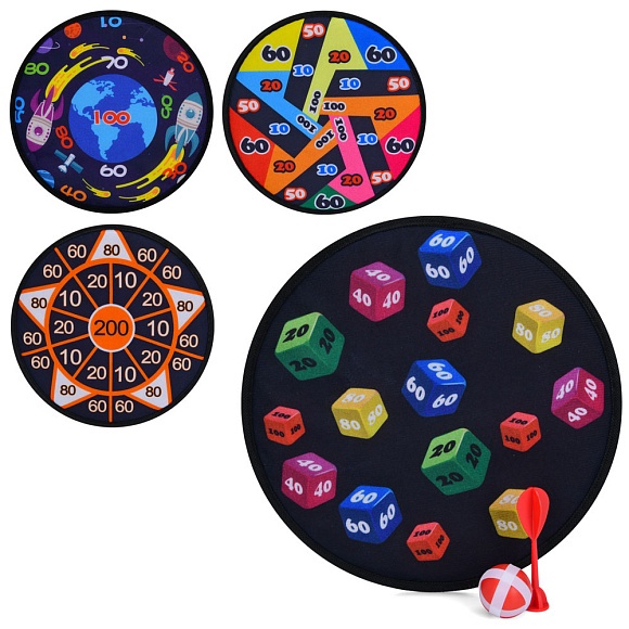 Дартс MR 1066 на липучці, м'яч 1 шт., дротик 1 шт., 4 види, кул., 29-32-3 см.