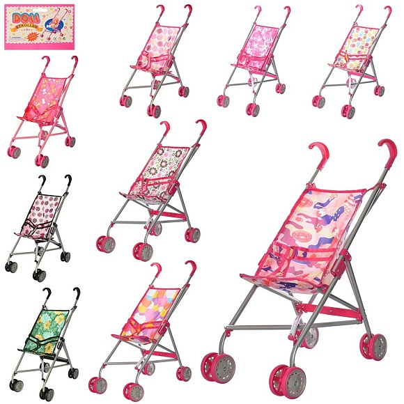 Опис Візок 9302 w для ляльки, мет., подвійні колеса, оберт., 5 видів, 55-49-26 см.