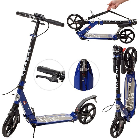 Опис Самокат SR 2-018-9-BL дорос.,алюм.,кол.2шт.ПУ200мм.,ручне гальмо,замок,синій,кор.