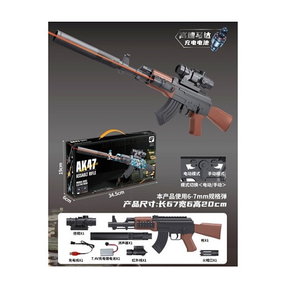 Опис Автомат 2030-1A акум., пластикові кулі, лазер, USB, кор., 34,5-19-6 см.