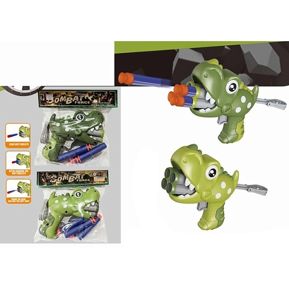 Опис Автомат 317 динозавр, м'які кулі-присоски 4 шт., 2 кольори, кул., 19-17-5 см.