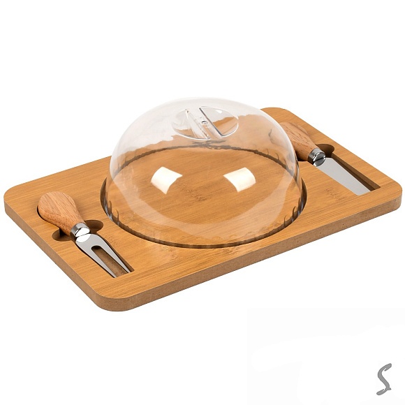 Блюдо бамбук з ковпаком, ножем та виделкою 19*29*см R35831