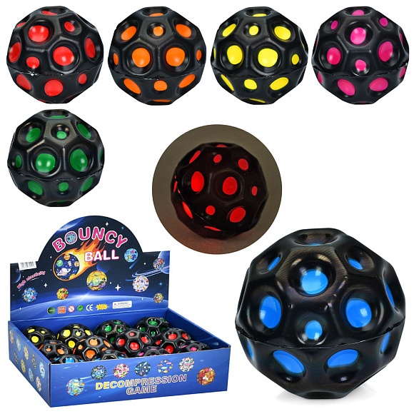 М'яч дитячий фомовий MS 4541 антигравітаційний,6кольорів,світло,бат.(табл.),12шт.в дисп.,28-20,5-7см