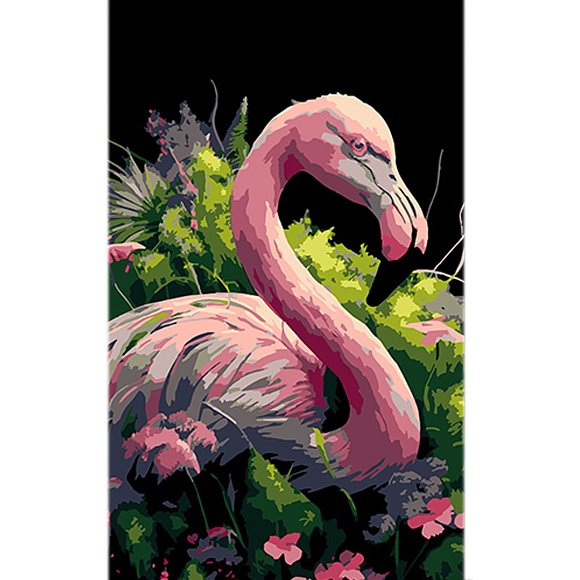 Опис Картина за номерами Strateg ПРЕМІУМ Фламінго в океані кольорів на чорному фоні розміром 50х25 см (BH5025-1)