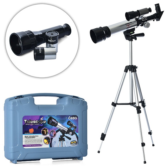 Опис Телескоп BG011 мет., на тренозі 30см., об'єктив, валіза, 35-28-8см.
