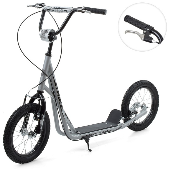 Самокат SR 2-045-1-G дорослий, сталь, 2 кол.-гума 14д, ручне гальмо, підніжка 28-11 см., сірий.