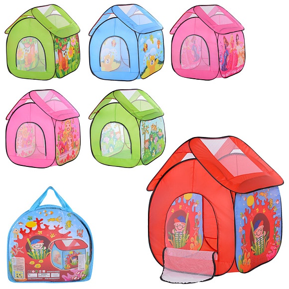 Опис Намет M 3756 будиночок, 1 вхід - сітка/заст.-блискавка, вікно-сітка, 6 видів, сумка, 37-37-5 см.