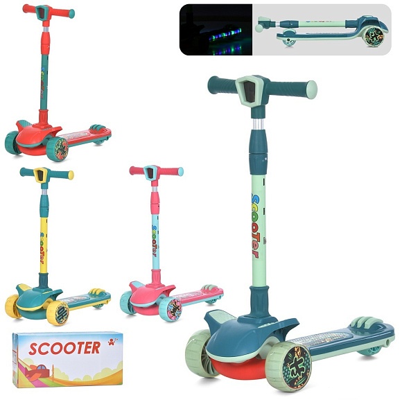 Самокат JR 3-092 Maxi-big,мет.+пласт.,3кол.ПУ,2пер.110мм,задн.75мм,підніжка,4кольори,світло,бат.,кор
