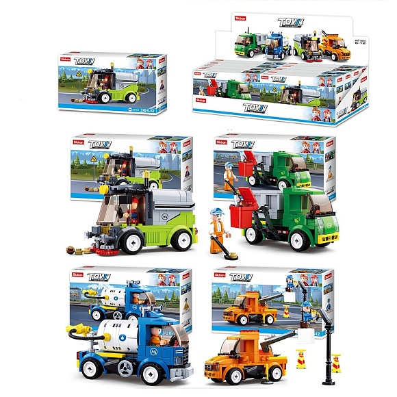 Опис Конструктор SLUBAN M38-B0781 транспорт, фігурка, від 118 дет., 8 шт. (4 види) в диспл., 48-15-19 см.