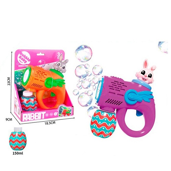 Опис Мильні бульбашки be-013 пістолет(кролик)запаска2 кольори,бат,кор.19-22,5-9см