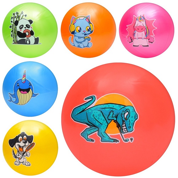Опис М'яч дитячий MS 3772 9 дюймів, 60г, тварина, 6 видів/6 кольорів.