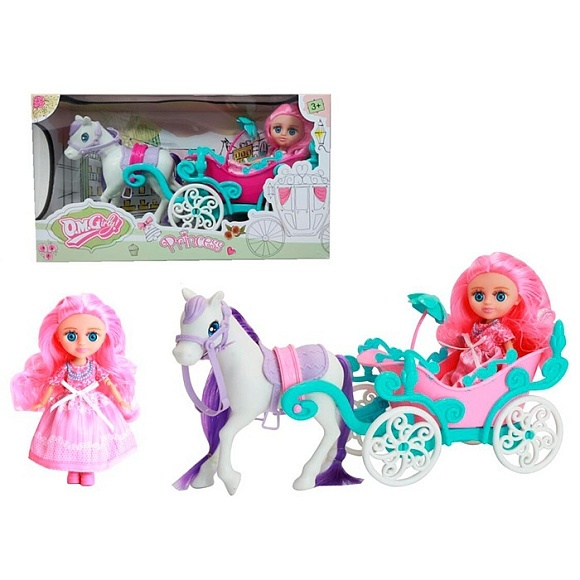 Карета RR015 конячка, лялька, шарнірна, кор., 32-18-10,5 см.
