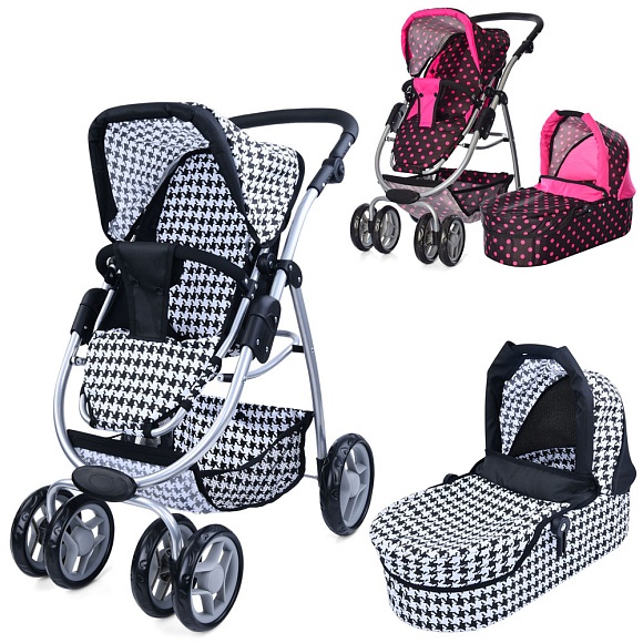 Візок 9662 для ляльки, мет., класика, поворот, кошик, люлька-переноска, 69-37-53 см.
