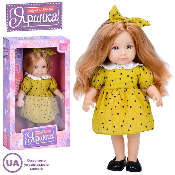 Опис Лялька m 5891 i ua Яринка, м'яконабивна, муз. (пісні), укр., бат. (табл.), кор., 23-39-10 см.