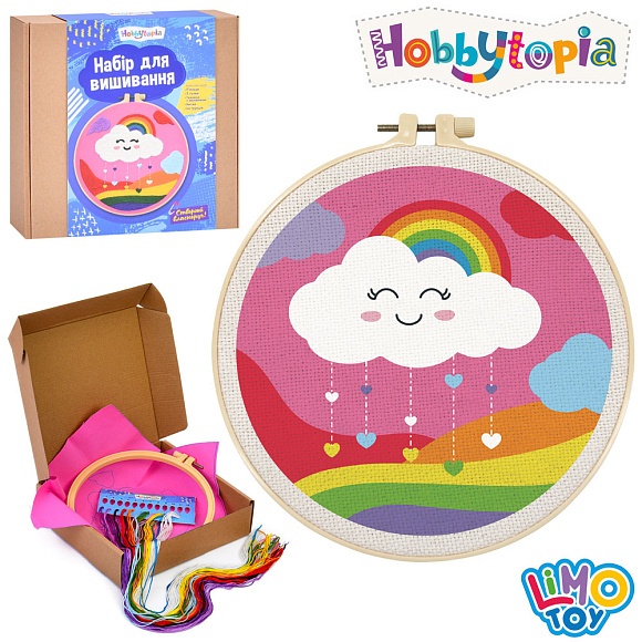 Опис Набір для творчості dyek1007 набір для вишив.,вишивка,хмаринка+веселка,п'яльце,голки,нитки,кор.22-20