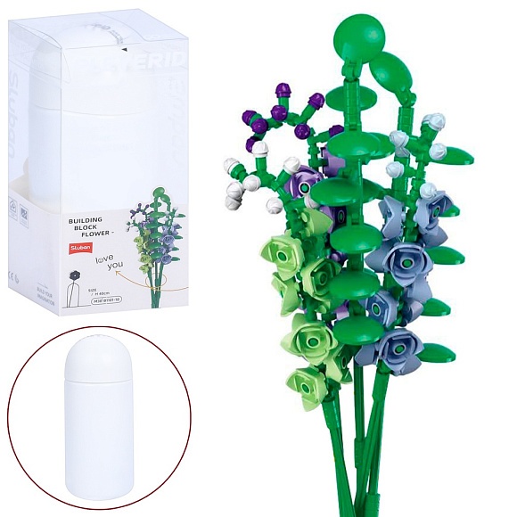 Опис Конструктор SLUBAN M38-B1101-18 квіти, дельфініум, колба, кор. (бліст.), 9,5-22-9,5 см.