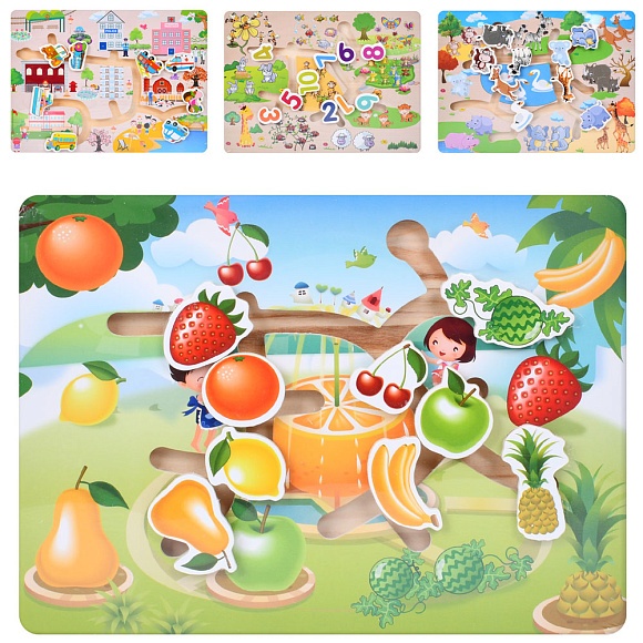 Опис Дерев'яна іграшка Лабіринт MD 0817 4 види, 1 ящик-1 вид, кул., 30-22,5-2,5 см.
