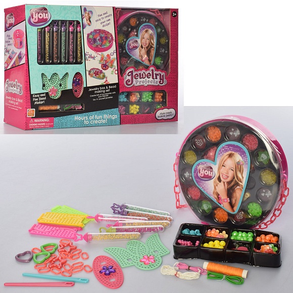 Бісер 8857 намистини, нитки, сумочка-скринька, заколочки, кор., 40-28-11 см.