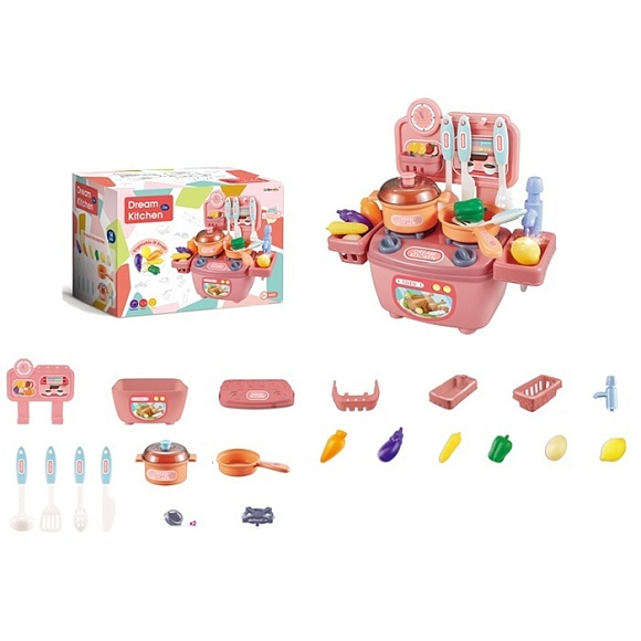 Кухня 777-4 плита, ллється вода (механіч.), посуд, продукти, 14 дет., кор., 25-18-4,5 см.