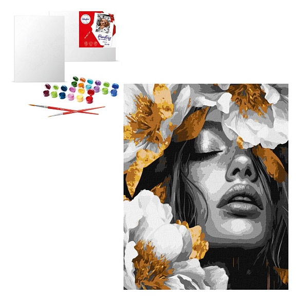 Опис Набір для розпису по номерах "Танець пелюсток з фарбами металік extra" 40х50cm