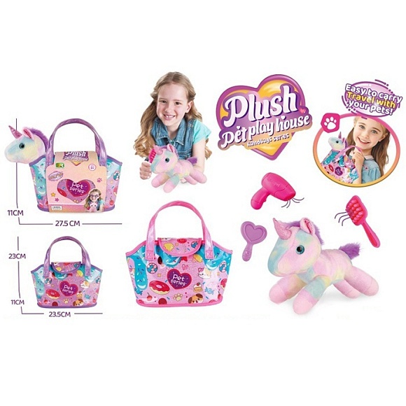 Опис М'яка іграшка у сумочці dr5151 єдиноріг,набір грумера(фен,гребінець),окуляри,сумка,карт.обг,23-22-11
