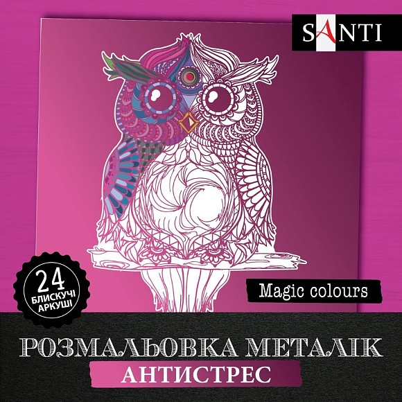 Опис Розмальовка santi металік антистрес "magic colors", 24 арк.