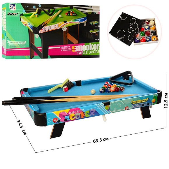 Більярд 2035+2 дерев., на ніжках, кий 2 шт., кулі, щітка, крейда, кор., 66-36-7 см.
