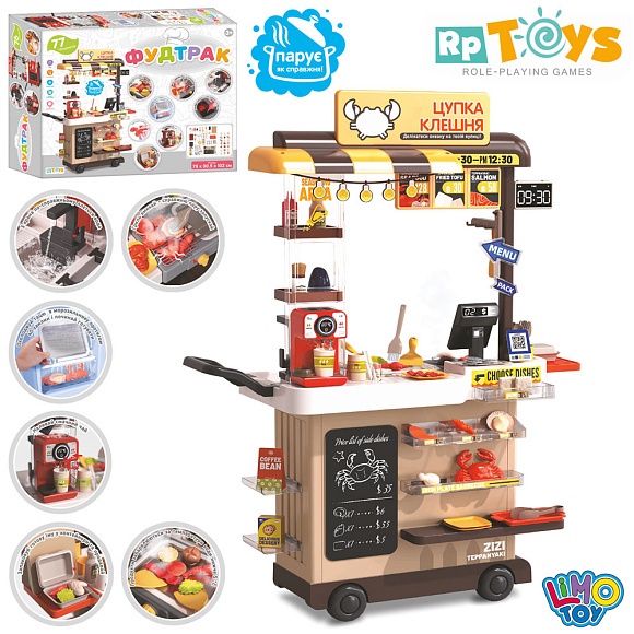 Магазин 889-285 гриль,прилавок,мийка-ллється вода,каса,кавовар.,продукти,77дет,.муз,світло,бат.,кор.