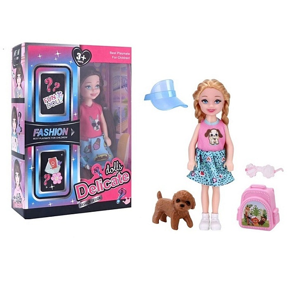 Лялька 8822-27 (72шт) 14см, собака, рюкзак, 2 види, в кор-ці, 12-17-4,5см