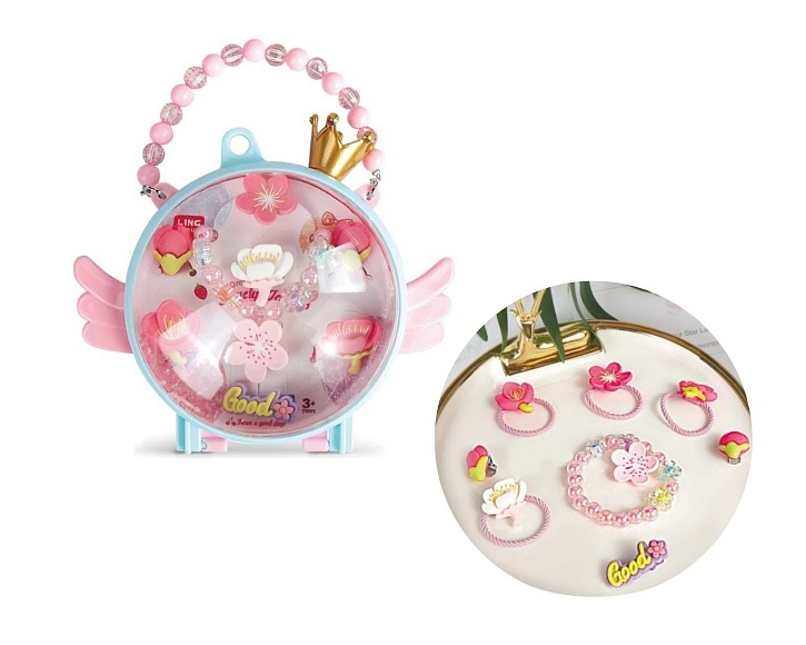 Набір аксесуарів UT7002A гумки для волосся, сережки, браслет, сумочка (пластик), кул.,15-13-6,5 см.