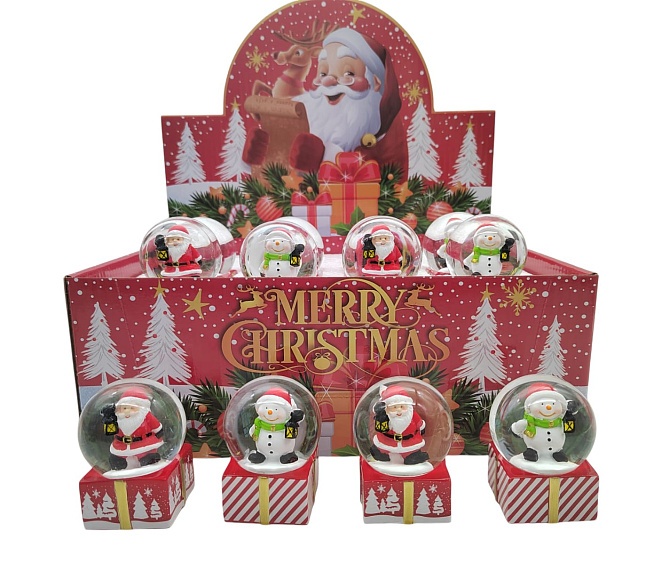 Новорічний декор M022 Різдвяний декор, сніжна куля, 4 види,12 шт. в диспл., 27-10-20,5 см.