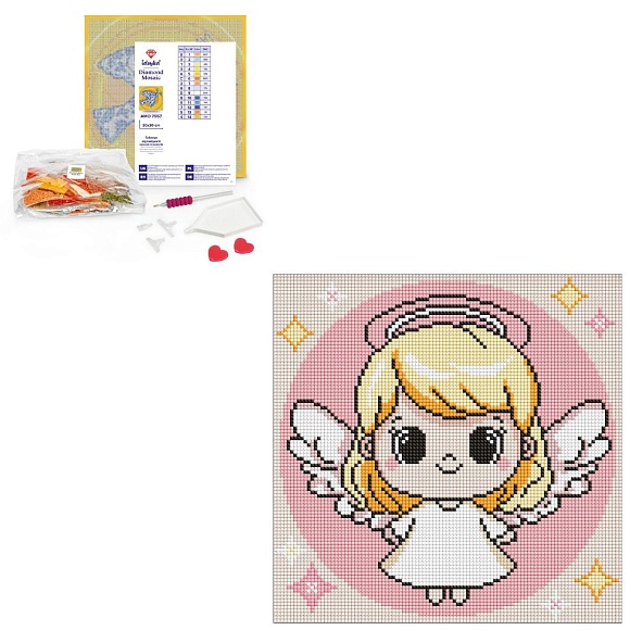 Опис Набір з алмазною мозаїкою для дітей "Святе янголятко" 30х30см