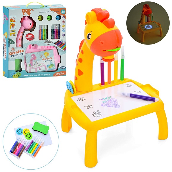 Проектор 222-10 жираф, слайди, фломастери, губка, 2 кольори, світло, бат., кор., 30-30,5-7 см.
