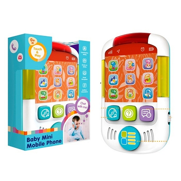Опис Телефон мобільний 7783 навч. (цифри), муз. (англ.), світло, бат., кор., 12,5-18-4,5 см.