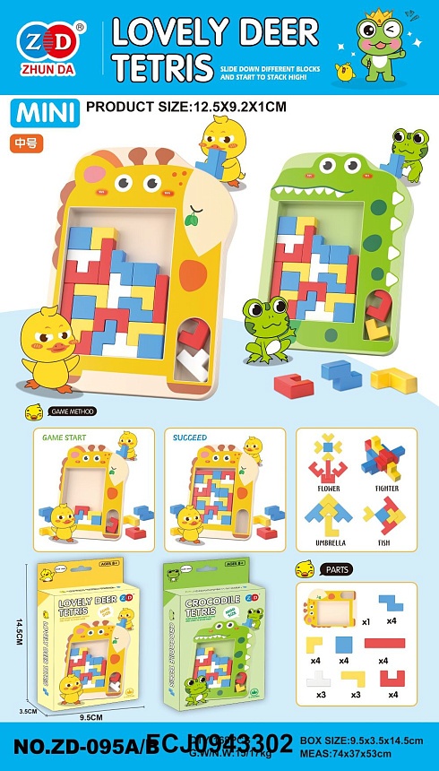 Опис Настільна гра ZD-095AB танграм/тетрис, ігрове поле, 2 види, кор., 12-22,5-3,5 см.
