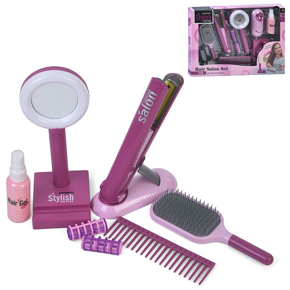 Опис Набір аксесуарів ylq-095 набір перукаря, плойка-світло/муз.,гребінець,лампа-світло,бігуді,бат.,кор.