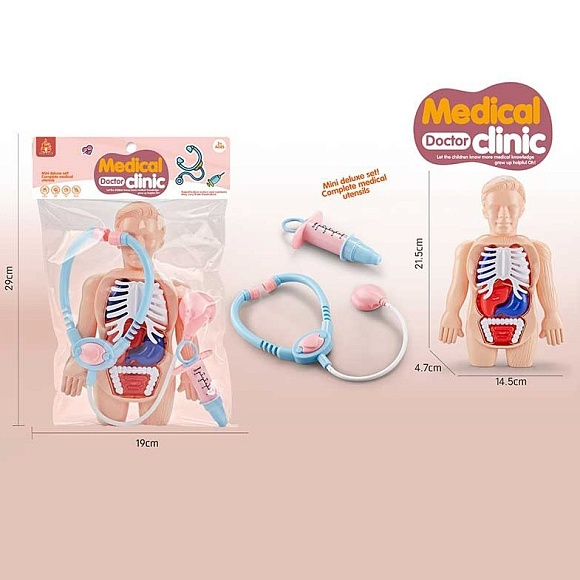 Опис Набiр лiкаря 23b-1 фігурка, стетоскоп, шприц, кул., 19-29-5 см.