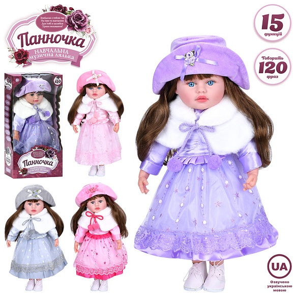 Опис Лялька m 5920 i ua Панночка,м'яконабивна,навч.,120 фраз,4 види,муз.(укр.),бат.(таб.),кор.,26-53-13см