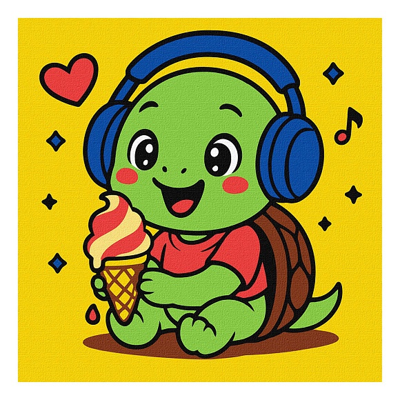 Опис Набір для розпису по номерах для дітей "Черепашка їсть морозиво" 25х25см