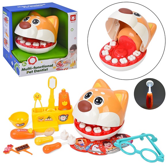 Опис Набір лікаря 832 набір стоматолога,щелепи(кіт),окуляри,мед.інструм.,світло,бат.(табл.),кор.,20,5-21,
